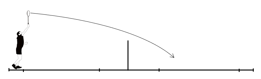 ネット前から軽くシャトルを上げ、打ち手はラケットの面を少し斜めにして打ち下ろします。ポイントは力を入れず、切るように打つこと。 - ハーフコートでのクロスカット練習