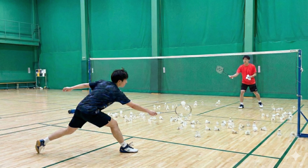 対角線ノックは、バドミントン特有の動きたい方向への切り返しを効率よく学べるトレーニングです。この練習を継続することで、苦しかった四隅への配球がチャンスボールに変わるはずです。まずはスピードよりも、正確な足運びとバランスを意識して取り組んでみてください。足が変われば、あなたのバドミントンはもっと楽しく、もっと強くなります。