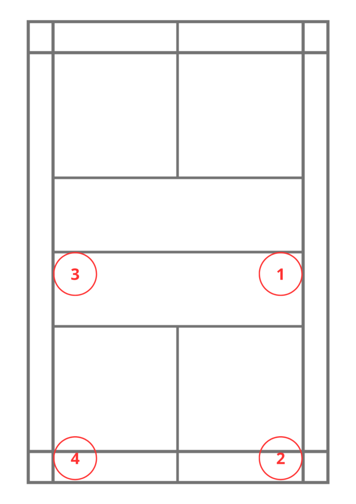 - 最後に対角のフォア奥へ下がり、打つ。