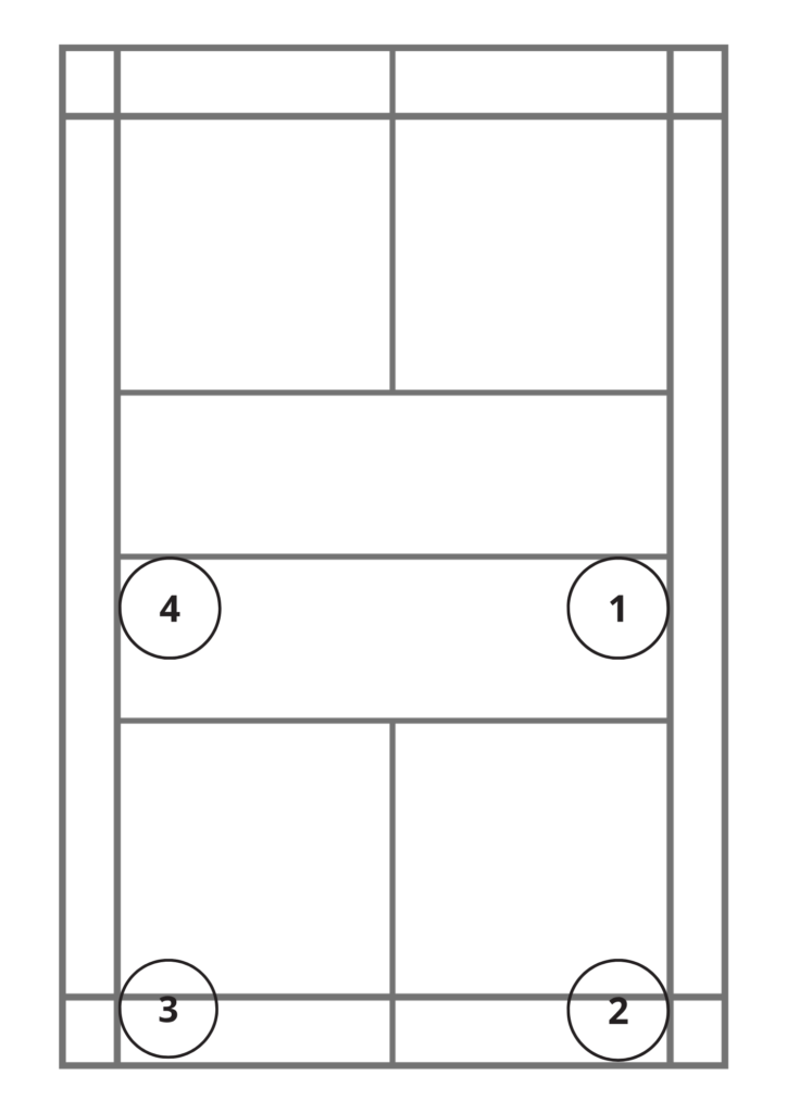 - 四隅への移動と打球:ノッカーはコートの四隅(フォア前・フォア奥・バック奥・バック前)へ順番にシャトルを出し、練習者はそこへ移動して打球したあと、必ず中央に戻ります。