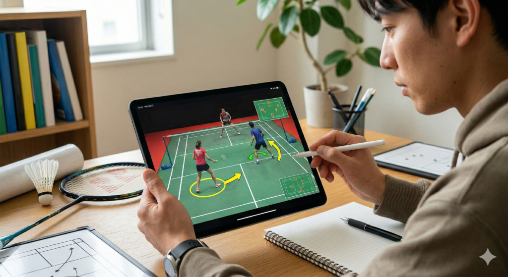 なぜその決定打が打てたのかという前段階の配球を見逃すと、自分の試合には活かせません。また、シャトルに触れていない方の選手の動きを無視するのもNGです。ミックスダブルスは、相方の動きに合わせて自分のポジションを数センチ単位で微調整するスポーツです。打っていない側の選手がどうカバーに入っているかを見ない限り、実戦で使える連係は身につきません。